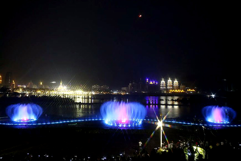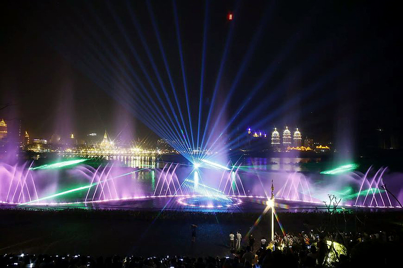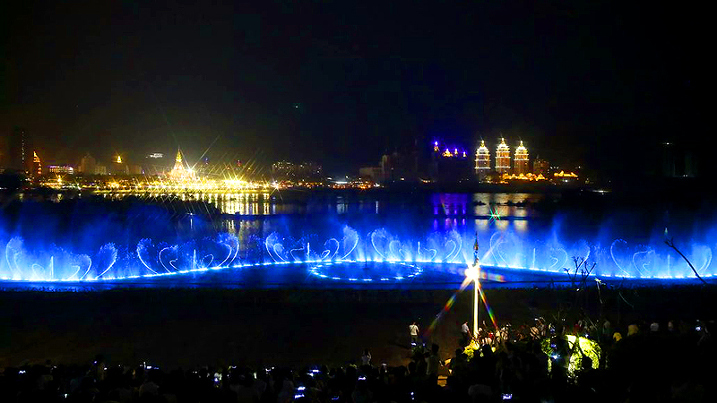 瀾滄江音樂噴泉建設于世紀金源酒店前、龍舟廣場下側瀾滄江邊,總計劃投資額2000余萬。是景洪市提升人居環境、建設宜居和諧幸福家園進程中又一項惠民工程,是景洪城又一個集休閑娛樂、文化交流、旅游觀光為一體的新景點。