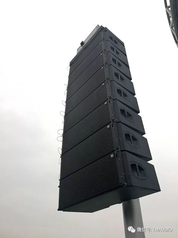本次項(xiàng)目采用TechMount提艾姆LA-212F線性陣列大型的3路驅(qū)動(dòng)的三分頻戶外全天候防水音響系統(tǒng),LA-212F線性陣列全天候防水音箱 16只,線陣音箱低音采用兩只大功率高效率12寸釹磁單元,呈啞鈴式對(duì)稱結(jié)構(gòu);中音和高音前后同軸結(jié)構(gòu)設(shè)計(jì),中音單元安裝有相位塞,大大提升了聲音的指向性,增加了中音高頻的穿透力。高音部分使用兩只高效率釹磁壓縮單元,通過(guò)一個(gè)平面波轉(zhuǎn)換器結(jié)合組成90度的指數(shù)曲線恒指向號(hào)筒,產(chǎn)生一個(gè)一致的波陣面,全釹磁高靈敏度單元構(gòu)成一個(gè)超大動(dòng)態(tài)的完美組合。