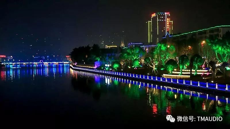 夜晚的金堂,褪去了白天的喧囂,漫步在毗河宜居水岸,感受燈光的魅力