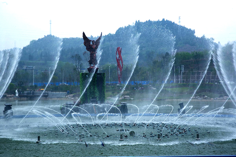 白馬湖音樂噴泉占地面積約500平方米,共有10組音樂噴泉,采用國內(nèi)先進(jìn)科技,將聲、光、水融合,展現(xiàn)變化獨特、新奇的水舞景觀效果。