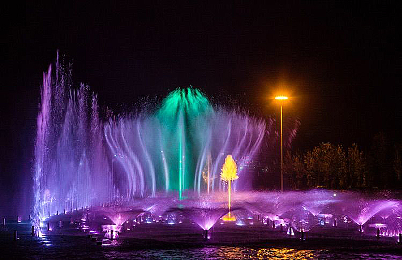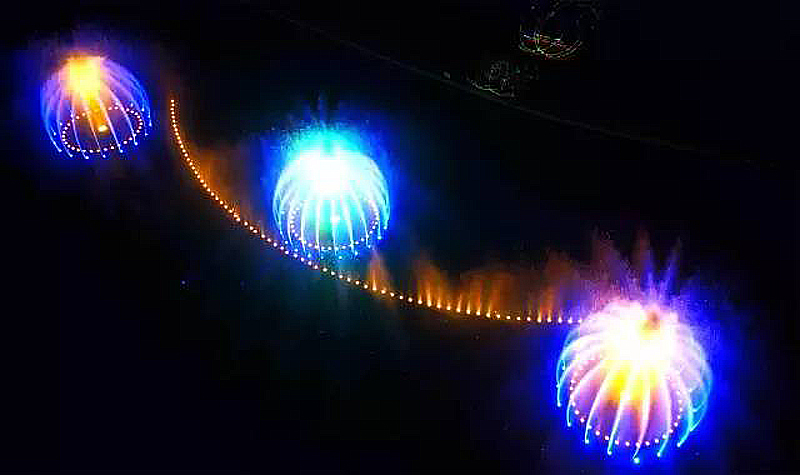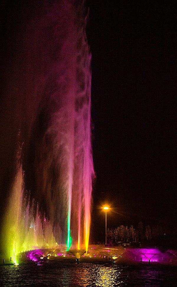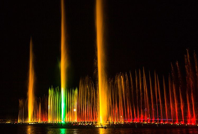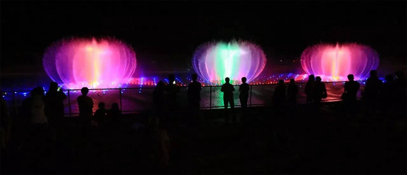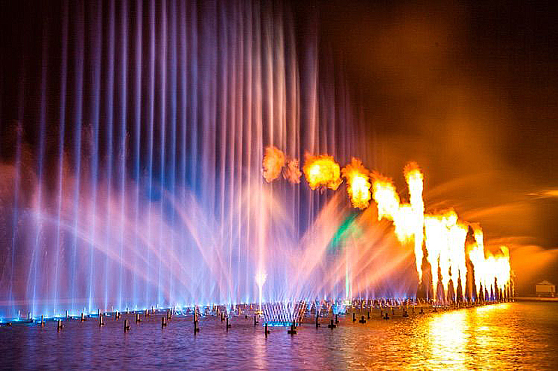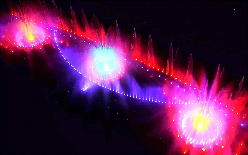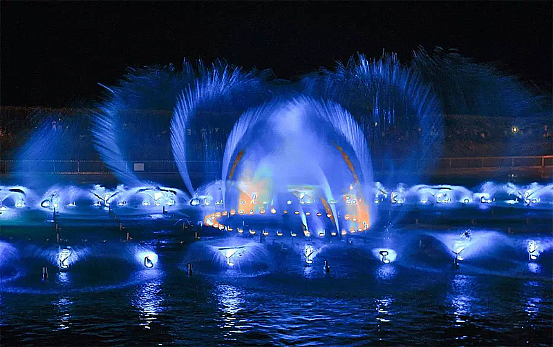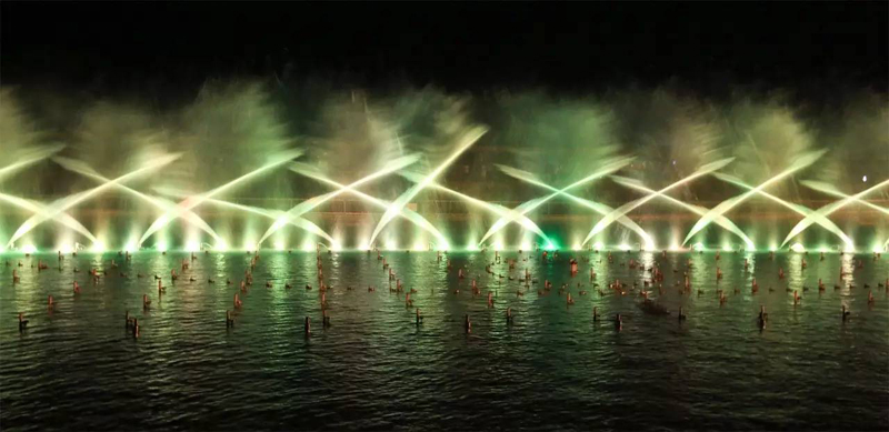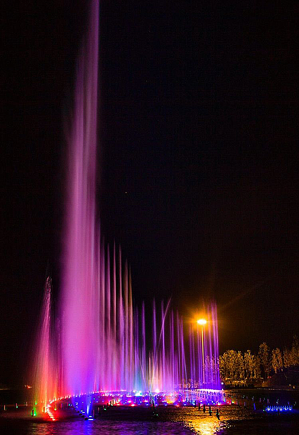 噴泉時(shí)而百米高噴、芙蓉出水;