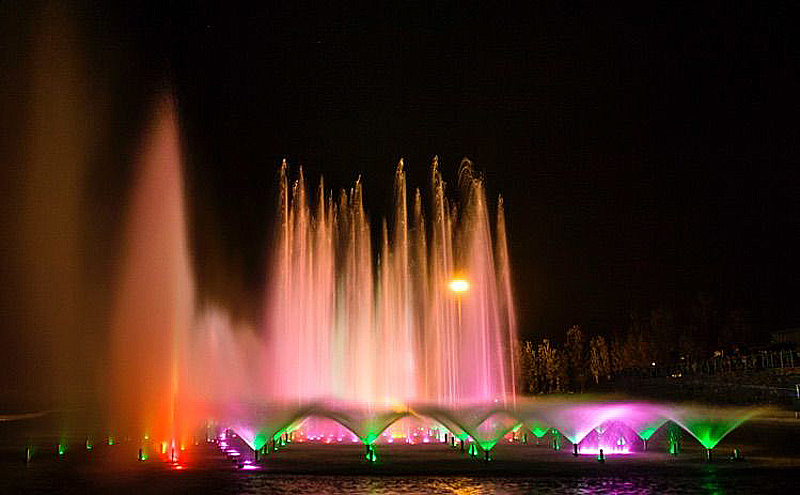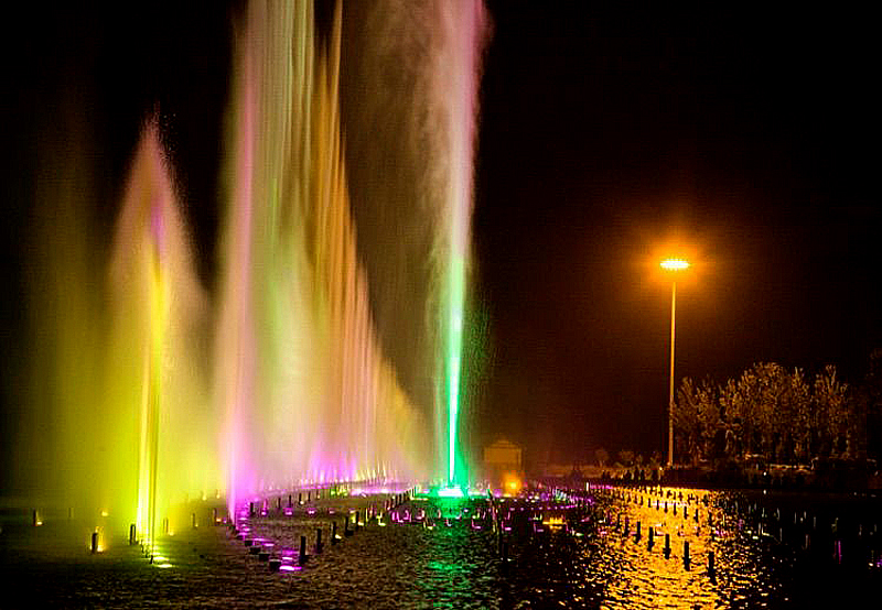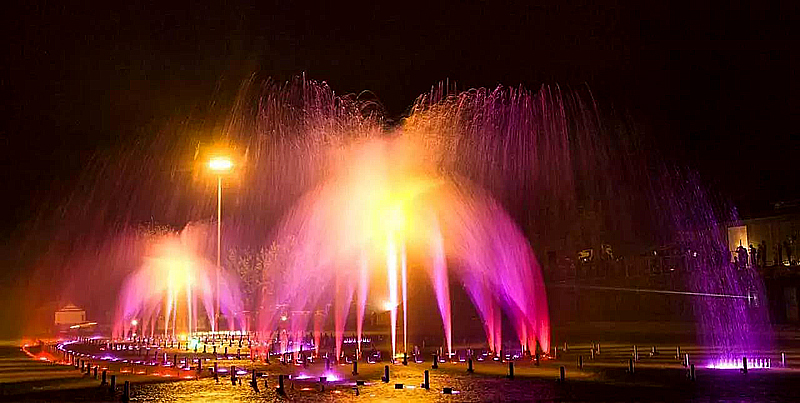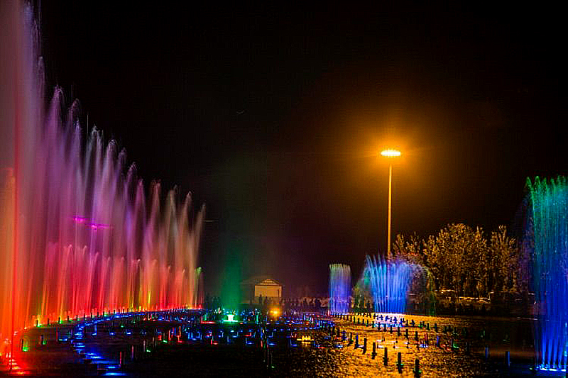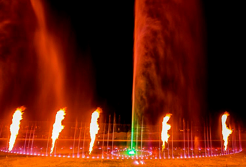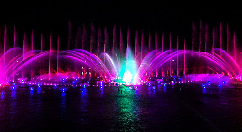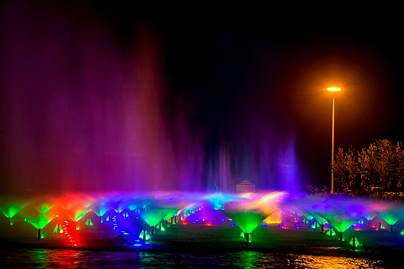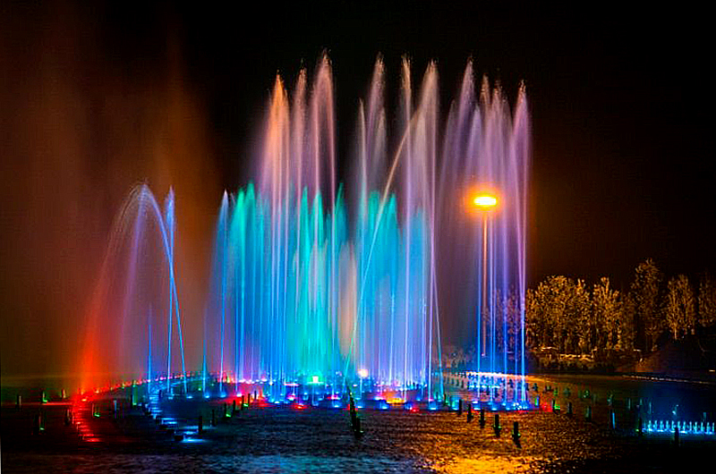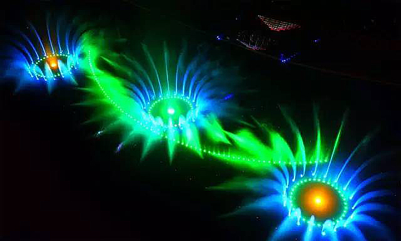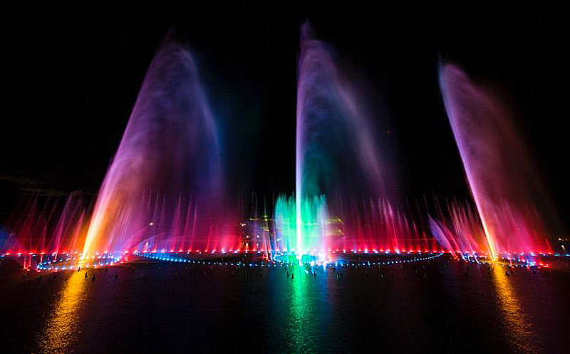 噴泉時(shí)而百米高噴、芙蓉出水;
