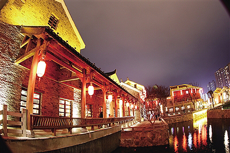 夜晚的古鎮自然、古樸,人們可盡情享這流光溢彩的勝景。