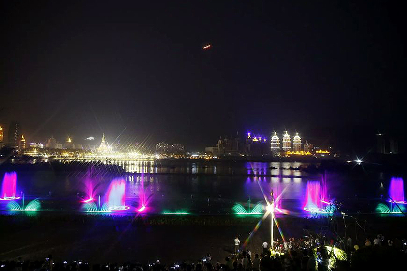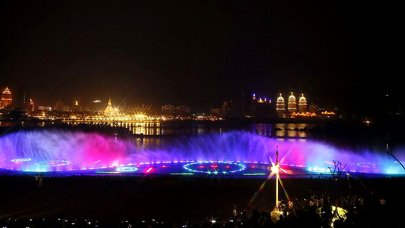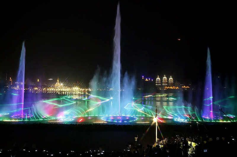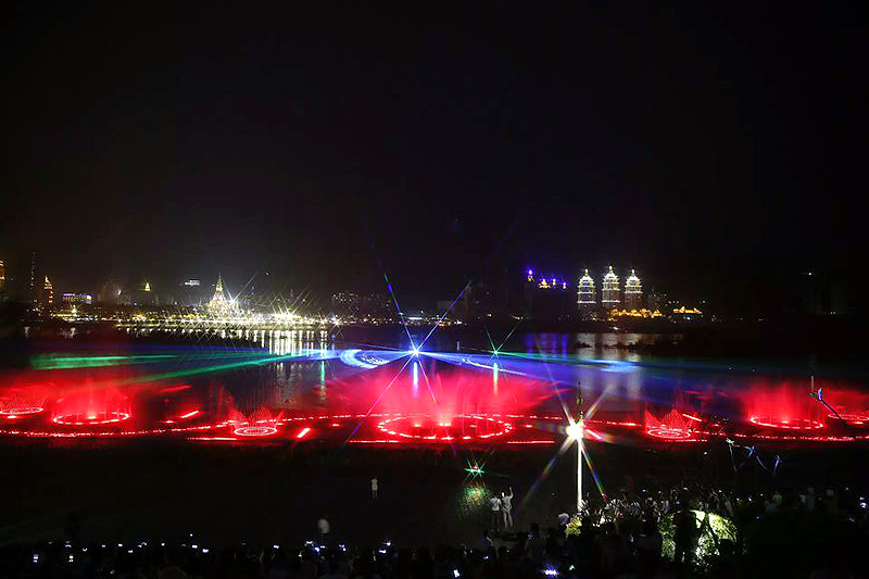 瀾滄江音樂噴泉建設于世紀金源酒店前、龍舟廣場下側瀾滄江邊,總計劃投資額2000余萬。是景洪市提升人居環境、建設宜居和諧幸福家園進程中又一項惠民工程,是景洪城又一個集休閑娛樂、文化交流、旅游觀光為一體的新景點。
