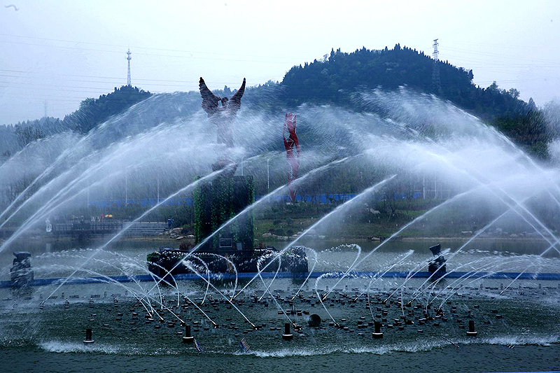 白馬湖音樂噴泉占地面積約500平方米,共有10組音樂噴泉,采用國內先進科技,將聲、光、水融合,展現變化獨特、新奇的水舞景觀效果。