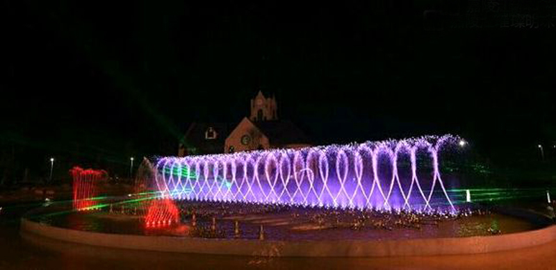 噴泉會隨著音樂的變化而變化,水柱時高時低,跟著音樂一起起舞,絢麗奪目的燈光打在水柱上,五顏六色,煞是好看。