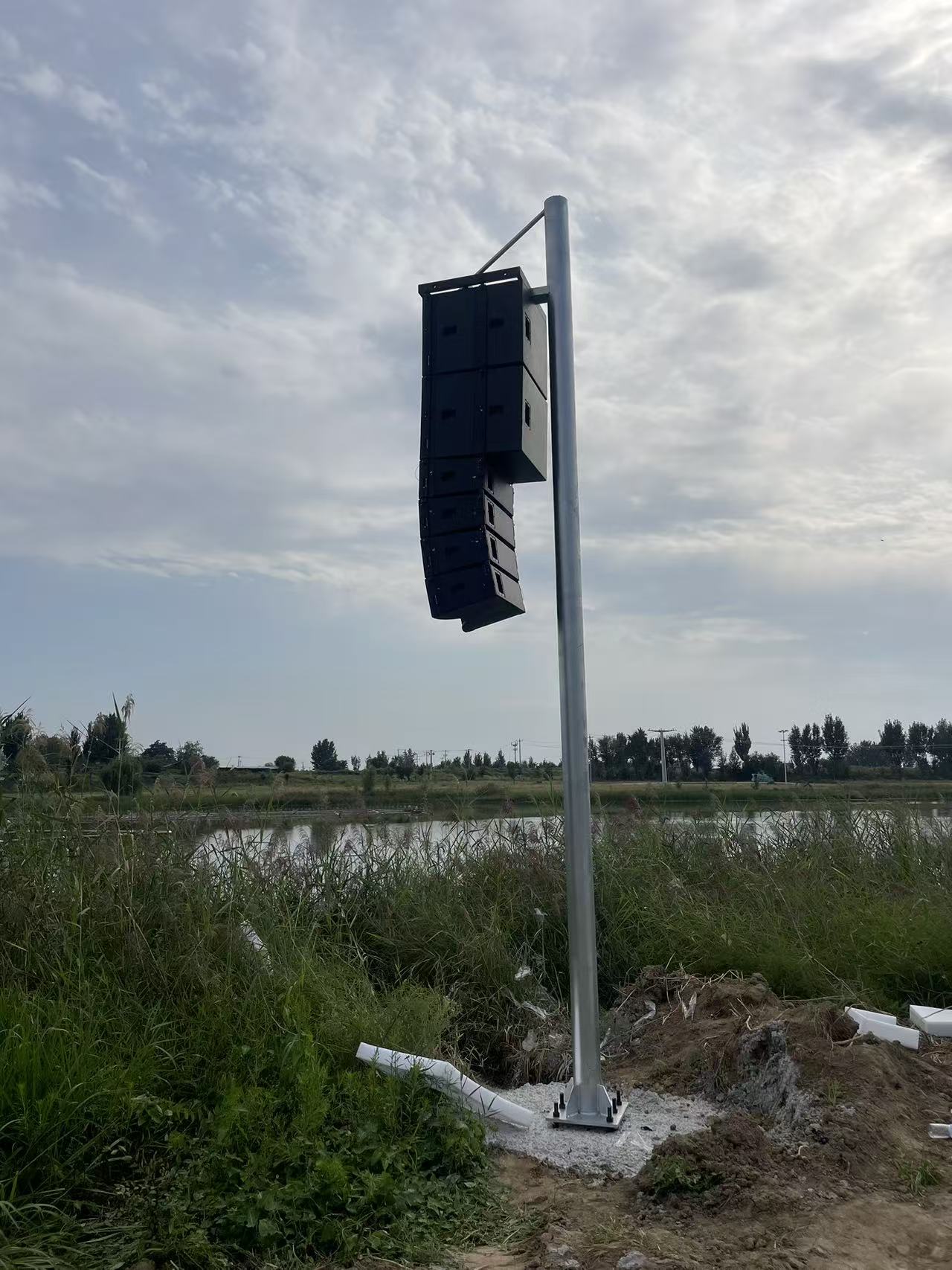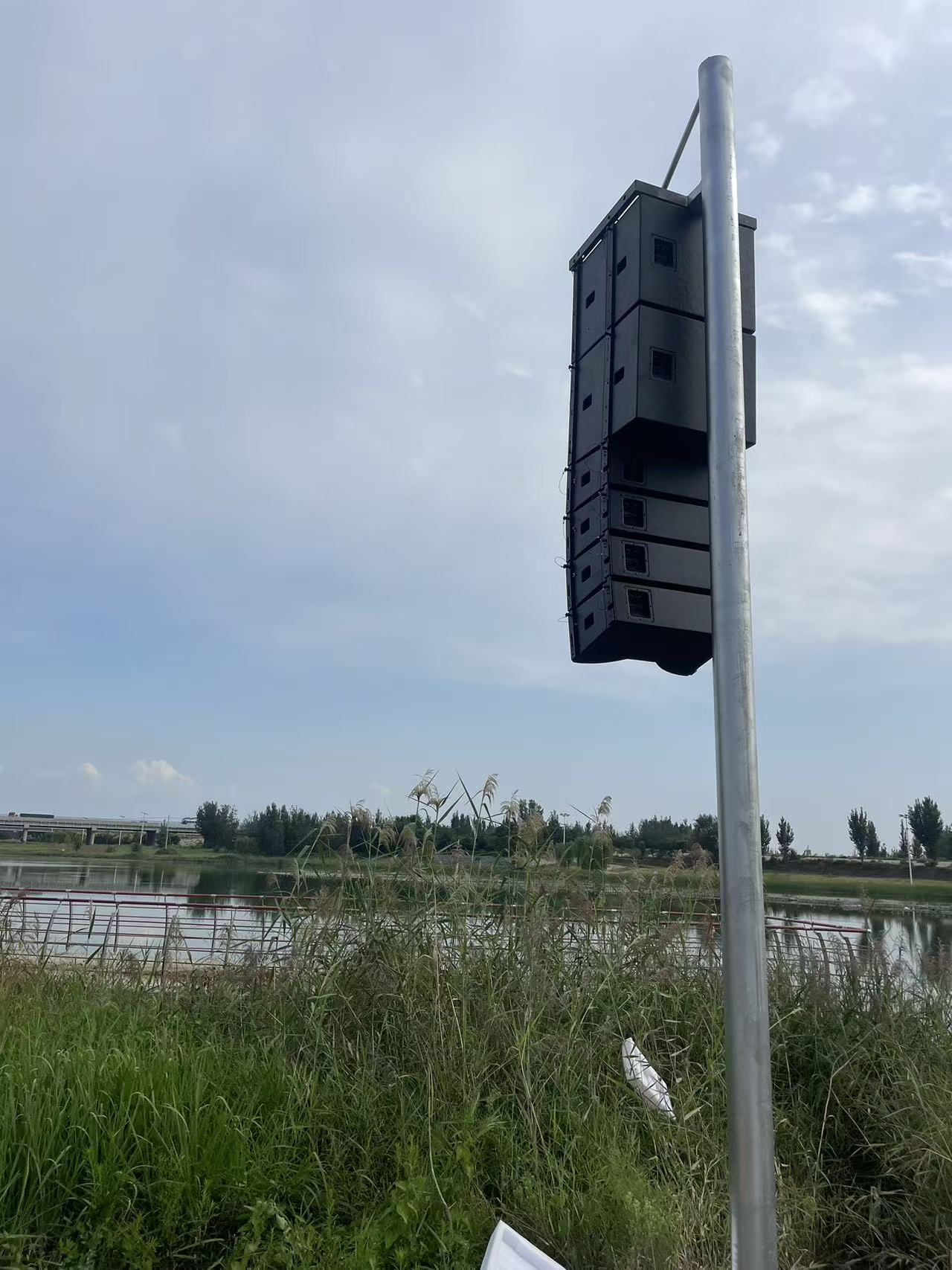 本項(xiàng)目采用升久聲光科技經(jīng)典LA-WP系列戶外線陣音響系統(tǒng)。此次主擴(kuò)音箱采用型號(hào)為L(zhǎng)A-82FG2線陣音箱24只,SUB-18XC超低音箱8只,分四組吊裝布置;該系列產(chǎn)品具有大功率,高靈敏度,高聲壓,射程遠(yuǎn),穿透力強(qiáng),指向性強(qiáng)等特點(diǎn),專為戶外文旅擴(kuò)聲項(xiàng)目而定制。8只超低音箱SUB-18XC采用高效率超低音喇叭,具有瞬態(tài)反應(yīng)快,低頻下限好,功率大,動(dòng)態(tài)大等特點(diǎn)。另外配套系統(tǒng)還包含PRO系列專業(yè)功率放大器16臺(tái),數(shù)字音頻處理器2臺(tái),專業(yè)播放器 2臺(tái),專業(yè)聲卡 2臺(tái),專業(yè)調(diào)音臺(tái) 2臺(tái)等周邊系統(tǒng)。